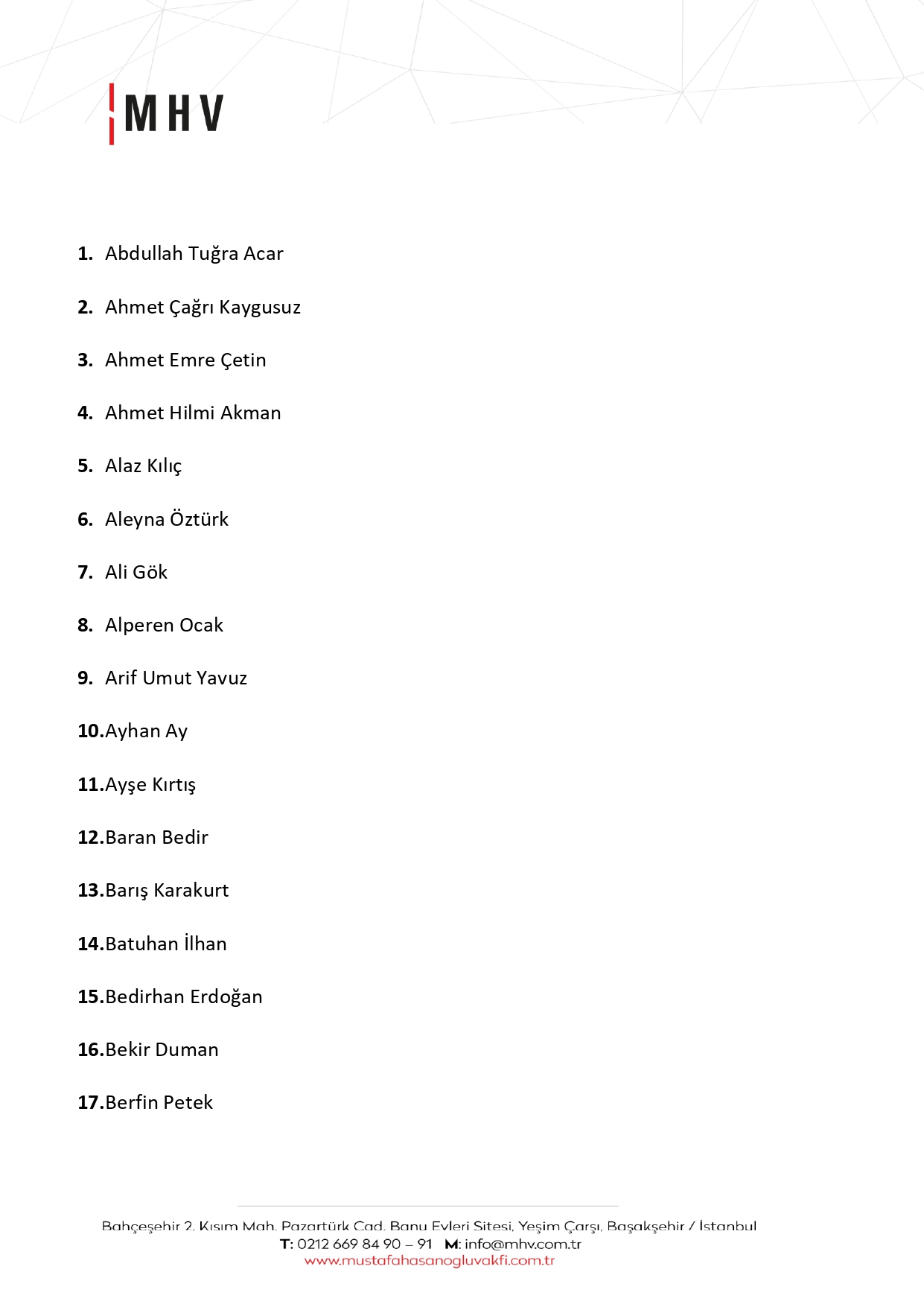 MUSTAFA HASANOĞLU VAKFI EĞİTİM BURSU